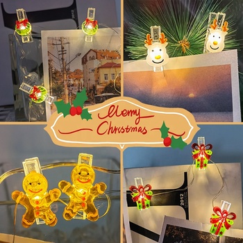 Mini decorazione di buon natale luce decorazione LED babbo natale pupazzo di neve scatola regalo foto clip luci stringa